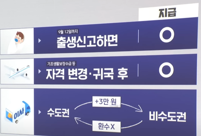 | 비수도권/농어촌 | 수도권 외·농어촌·인구감소지역 | 3만/5만 원 더 받음! | 1차 지급 시 추가로 | 같은 곳 사용 가능 | 같은 방법 | 이사하면 바뀔 수 있음 |